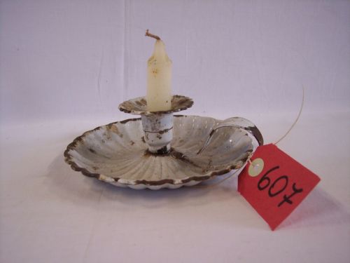oggetto costituito da un piatto circolare modellato a cappe con parte centrale leggermente rialzata; al centro porta candela cilindrico con bordo estroflesso ampio; ansa a nastro che parte dal centro del piatto e si lega al suo bordoNotizie storico-critiche