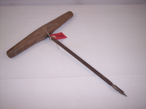 oggetto costituito da un tondino di ferro con punta elicoidale appuntita ad unestremità, mentre allaltra è inserito orizzontalmente un manico in legno di forma cilindrica leggermente rigonfia al centroNotizie storico-critiche