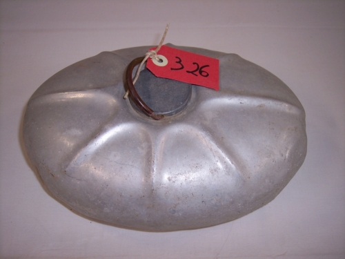 recipiente a forma di elissi con apertura centrale nella parte superiore di forma circolare chiusa da un tappo a vite con manico tubolare che la ricopre ad arco. Dal centro del recipiente partono delle decorazioni in rilievo fatte ad arcoNotizie storico-critiche