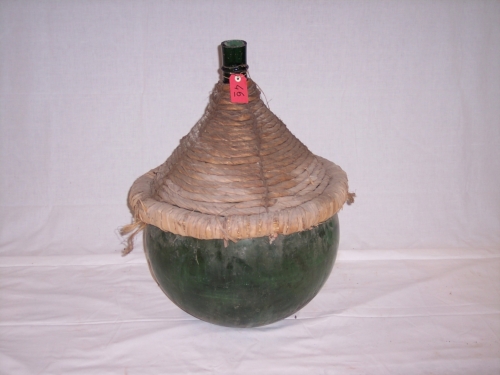 oggetto costituito da una grande bottiglia di vetro a forma sferica (una specie di grande pera) con corto collo; rivestita nella parte superiore dalla gola alla pancia di una copertura fatta di vimini larghi intrecciatiNotizie storico-critiche