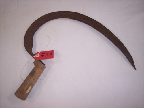 attrezzo composto da una lama sottile semicircolare schiacciata con filo all'interno, terminante su un lato con una punta acuminata quasi dritta, e su quello opposto con una costola rialzata. Fissata al manico con un'appendice ritorta ed inchiodata. Il manico in legno è leggermente sagomato a sezione circolareNotizie storico-critiche