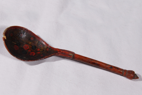 cucchiaio dipinto a motivi floreali e verniciato.