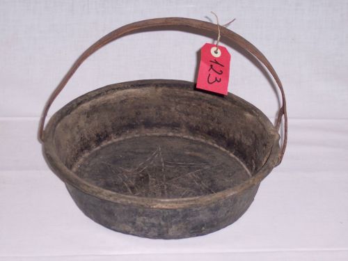 teglia in rame di forma circolare con parete leggermente inclinata verso lesterno e obliqua, orlo estroflesso tubolare e manico rigido a nastro ricopre ad arco tutto loggetto. Sul fondo appare incisa una stella a sei punte.Notizie storico-critiche