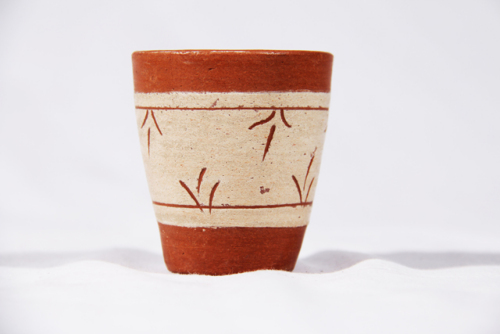 vasetto di terracotta bianco e rosso a motivi decorati di colore rosso.