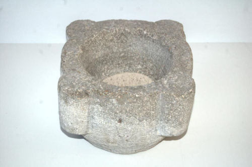 recipiente a sezione circolare ricavato da un unico pezzo di pietra; presenta bordi spessi e fondo concavo; sulla superficie esterna è dotato di 4 impugnature sporgenti quadrangolariNotizie storico-critiche