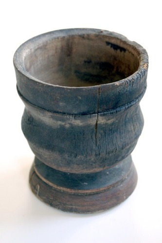 Recipiente in legno a sezione circolare con modanatura esterna decorativa e fondo concavo; poggiante su una base rotonda modanata.Notizie storico-critiche