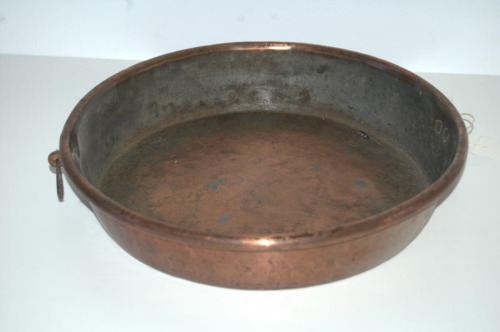 Recipiente in rame, a sezione circolare, stagnato allinterno, con fondo piatto e sponda quasi diritta con bordo superiore arrotondato; dotato di due anelli in ferro, fissati con borchie sotto il bordo superiore, in posizione opposta l'uno all'altro.Notizie storico-critiche