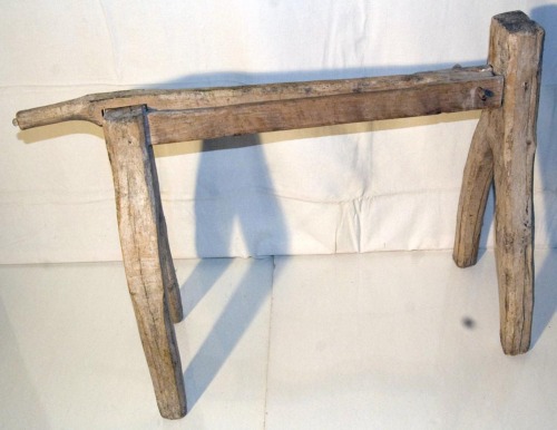 gramola a una fessura su cavalletto a quattro gambe: strumento utilizzato per la gramolatura della canapa, cioè per liberare il tiglio dalle parti legnose delle piante; in particolare questo tipo di gramola #spèth#, consentiva la scavezzatura più grossolana dei fusti. Nella fessura della trave orizzontale del cavalletto a quattro gambe, si muove la leva con un solo spigolo.
