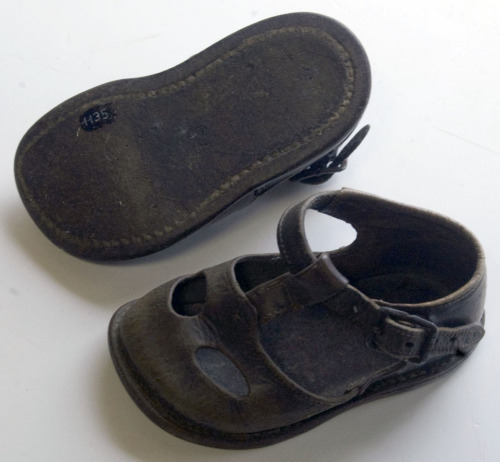 paio di sandali in cuoio, utilizzati nella stagione estiva da un bambino