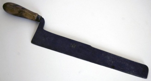 In origine utilizzato in cucina unitamente ad un supporto in legno per tagliare il pane raffermo. Poi probabilmente riadattato per uso coltello da cucina.