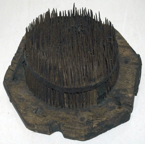 utilizzato nella lavorazione della canapa, per la seconda e terza pettinatura della fibra dopo la gramolatura, in modo da ottenere una fibra lunga e sottile pronta per la filatura