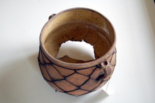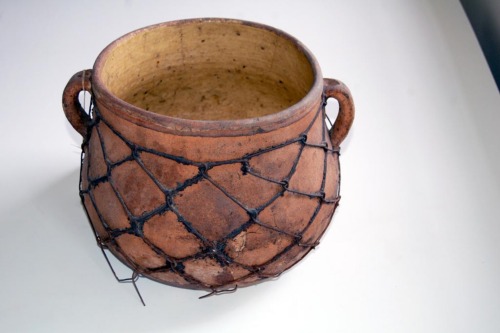 Recipiente in terracotta a sezione circolare, di forma panciuta, smaltato solo allinterno di colore giallo; il diametro è un po superiore allaltezza e lievemente maggiore alla base che sul bordo superiore; dotato di due manici verticali a occhiello posti sotto il bordo superiore arrotondato, luno opposto allaltro.Notizie storico-critiche