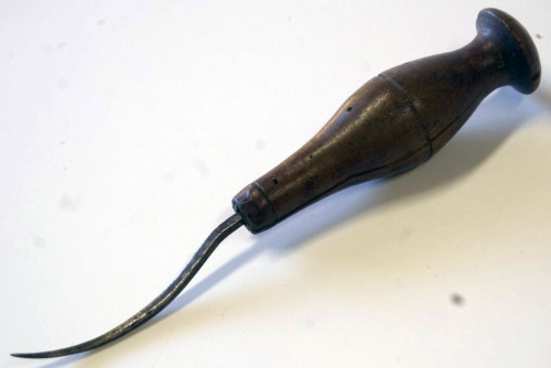 serviva ad aprire i fori entro cui si passa lo spago impeciato per cucire la suola e la tomaia delle scarpe