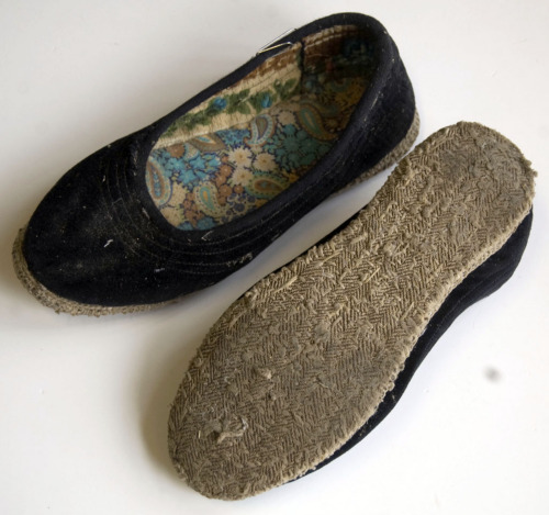 scarpette basse con la suola realizzata con strati di stoffa trapuntata a mano con lo spago, per renderla più resistente. Calzature utilizzate da donne sia per stare all'aperto che in casa.
