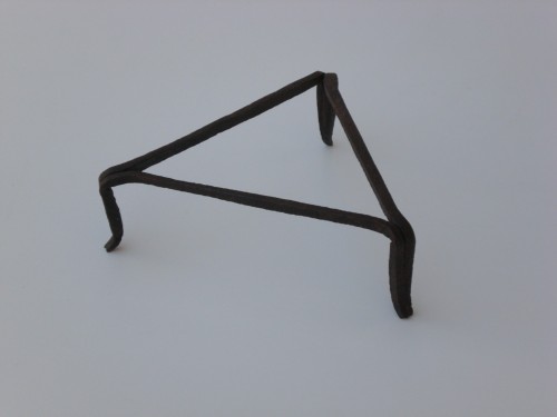 struttura in ferro a forma triangolare, sorretta da 3 piedini posti ad ogni angolo. I piedini sono formati dallincontro dei due lati del triangolo fusi assieme. I piedini terminano in un ricciolo decorativo.Notizie storico-critiche
