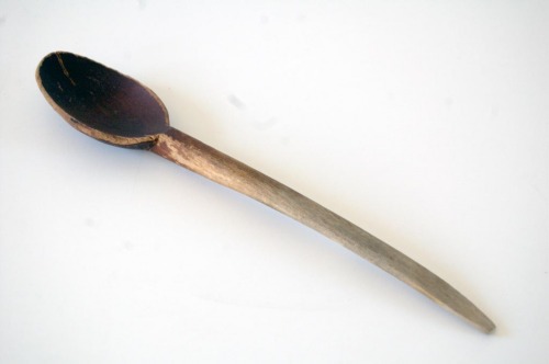 Utensile in legno composto da un manico appiattito ad unestremità e a sezione ovale a quella opposta, dove si allarga in una concavità di forma ovale; la parte concava presenta una colorazione marrone dovuta a residui di verniciatura.Notizie storico-critiche