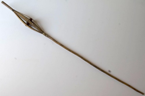 attrezzo sul quale la filatrice dispone il materiale per averlo a portata di mano durante la filatura. La filatrice lo tiene mentre lavora sotto il braccio sinistro.