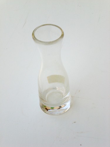 Piccolo recipinte in vetro trasparente di capienza pari ad un decimo di litro. Il corpo centrale si stringe verso il collo per poi allargarsi nouvamente verso la bocca.Notizie storico-critiche