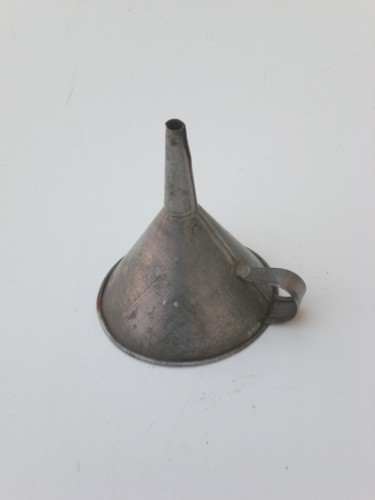 Utensile in ferro brunito a forma di cono rovesciato, la cui parte terminale è molto stretta per agevolare linserimento dellutensile allinterno dei colli delle bottiglie. E presente un piccolo manico ad ansa sul lato per poterlo impugnare facilmente.Notizie storico-critiche