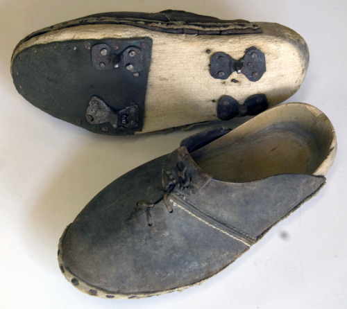 calzature in genere ricavate da un pezzo di legno, scavato internamente, con tomaia e suola in legno e una striscia di cuoio (guiggia) sotto la quale si infila il piede; sotto la suola erano infisse 4 punte di ferro #ranpogn# per non scivolare. Queste presentano la tomaia interamente in cuoio. Utilizzate da uomini e da donne per i lavori all'aperto