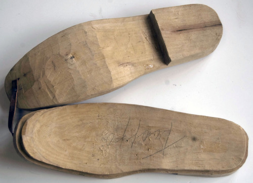 paio di suole di calzature da uomo con tomaia in pelle #galòthe#, che venivano utilizzate prevalentemente durante la stagione invernale