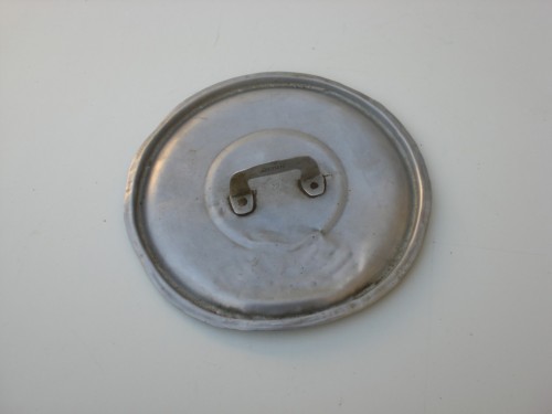 Leggero disco metallico. Al centro è presente un manico anchesso in lamina metallica annesso al coperchio tramite due piccole brocche in rame. Siul manico è presente una scritta, mentre al di sotto di esso è inciso il numero 22.Notizie storico-critiche
