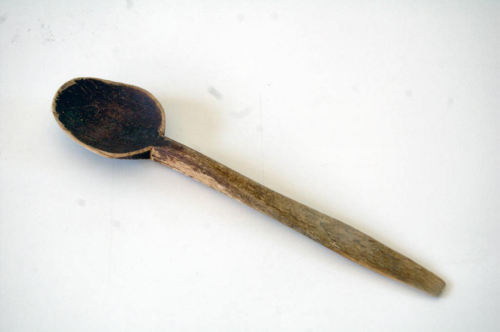 utensile in legno composto da un manico appiattito ad unestremità, e a sezione ovale a quella opposta, dove si allarga in una concavità di forma ovale. La parte concava presenta una colorazione marrone data da residui di verniciaturaNotizie storico-critiche