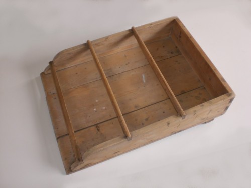 oggetto in legno formato da assi inchiodate a forma di poligono irregolare, dalla forma simile ad una rastrelliera, sono presenti tre listelli trasversali su cui poggiavano i piatti mentre si asciugavano.Notizie storico-critiche