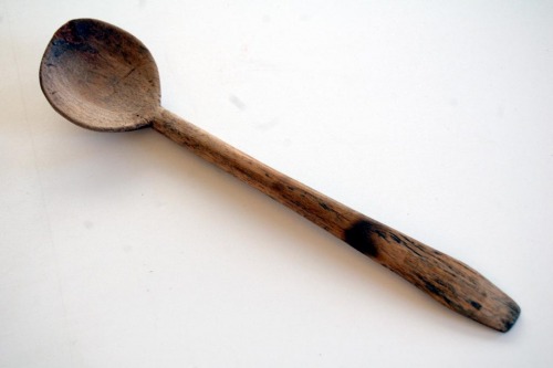 Utensile in legno composto da un manico a sezione circolare, appiattito ad unestremità, e da una concavità di forma circolare.Notizie storico-critiche