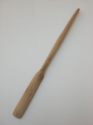 Utensile in legno a forma cilindrica più stretto ad una estremità e piatto allaltra estremità. appesa.Notizie storico-critiche