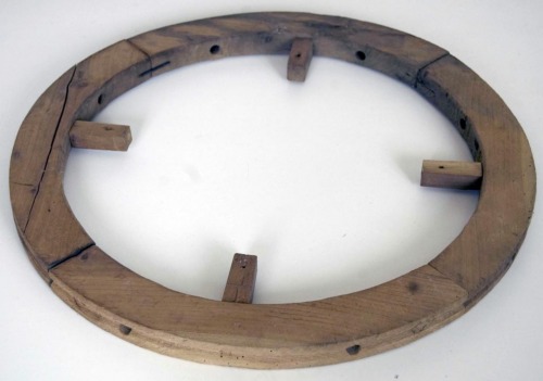 attrezzo facente parte del filatoio a pedale; alloggiata su un supporto in legno, la girella viene azionata mediante una biella fissata in fondo al pedale inserito nel piede del filatoio. Entro un'apposita scanalatura della ruota, passa il cavo di trasmissione che dà il movimento al meccanismo di filatura