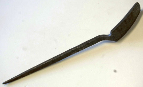 utilizzato per eliminare le teste dei chiodi di legno eventualmente fuoriusciti dal rivestimento in pelle applicato nella parte interna della suola delle scarpe