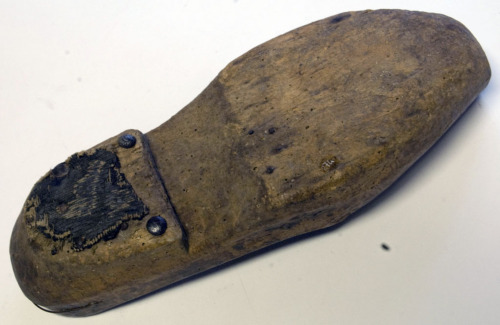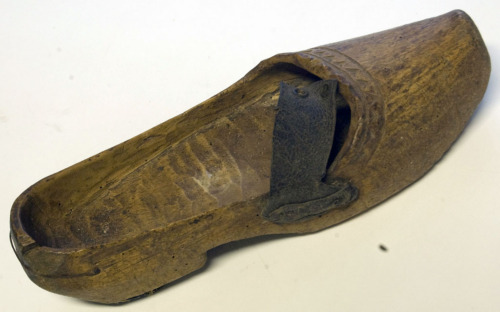 calzature del piede sinistro ricavata da un pezzo di legno, scavato internamente, con tomaia e suola in legno e una striscia di cuoio (guiggia) sotto la quale si infila il piede; sotto la suola sono inseriti chiodi in ferro per non scivolare. Utilizzate da uomini e da donne per i lavori all'aperto