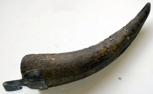 corno di bue (intaglio) / ferro (modellatura a stampo industriale/ taglio/ fissaggio con chiodi)
