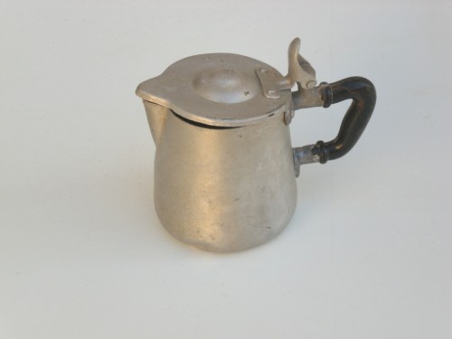 Piccolo recipinte in latta di forma cilindrica dotato di beccuccio sul bordo superiore; lateralmente è provvisto di manico ad occhiello di plastica nera e latta. Il recipiente è provvisto di un coperchio circolare con beccuccio annesso al corpo tramite una cerniera e con una levetta che serve a sollevare il coperchio stesso. Presenta uniscrizione sul fondo.Notizie storico-critiche