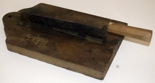 Utilizzato per tagliare il pane. Il pane veniva posto sul tagliere e tagliato abbassando la lama