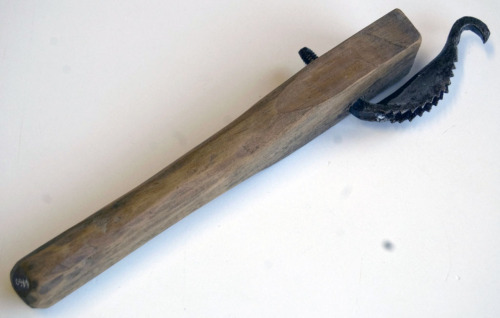 attrezzo utilizzato per la produzione delle #galòthe#: calzature tradizionali con suola di legno e tomaia di cuoio; serviva a scavare il solco lungo il bordo della suola, nel quale veniva inchiodata la tomaia