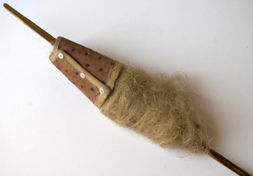 attrezzo sul quale la filatrice dispone il materiale per averlo a portata di mano durante la filatura. La filatrice lo tiene mentre lavora sotto il braccio sinistro. In questo caso era utilizzato per la filatura della canapa.