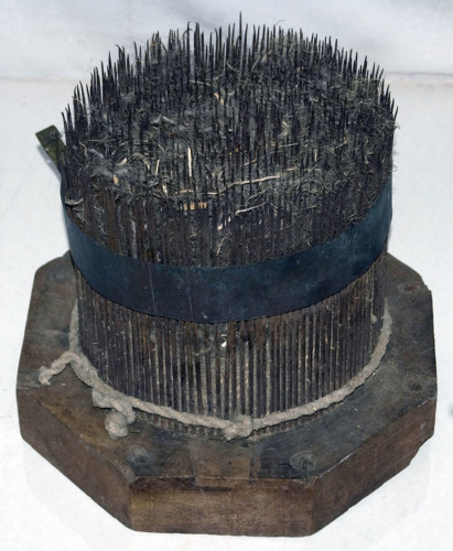 utilizzato nella lavorazione della canapa, per la seconda e terza pettinatura della fibra dopo la gramolatura, in modo da ottenere una fibra lunga e sottile pronta per la filatura