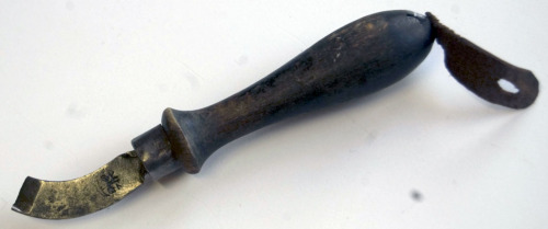 serviva per togliere il sovrappiù e smussare il bordo superiore esterno del guardolo, striscia di cuoio che si applica sotto il perimetro della tomaia