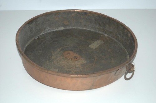 Recipiente in rame, a sezione circolare, stagnato allinterno, con fondo piatto e sponda quasi diritta con bordo superiore arrotondato; dotato di anello in ferro fissato con borchie in rame sotto il bordo esterno.Notizie storico-critiche