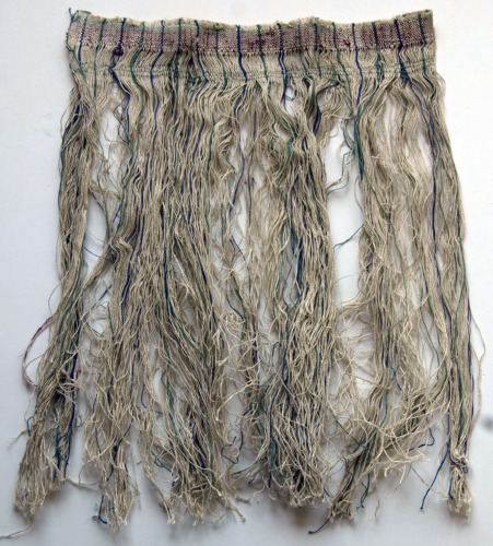 estremità dei fili non tessuti dell'ordito che restavano nei licci e che venivano recuperati nella tela successiva