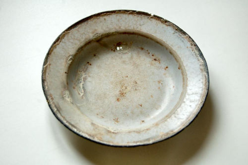 basso recipiente di forma circolare con bordo piatto e largo leggermente svasato e spigolo arrotondato; il diametro della base è circa la metà del diametro del bordo superiore; in latta smaltata di bianco e bordata di neroNotizie storico-critiche