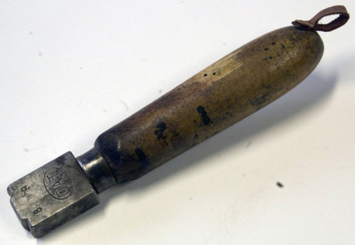 usato per dare la rifinitura finale ai bordi della suola e del tacco (quando non sono troppo grossi), lisciandoli dopo averli spalmati con cera da scarpe e aver riscaldato lo strumento