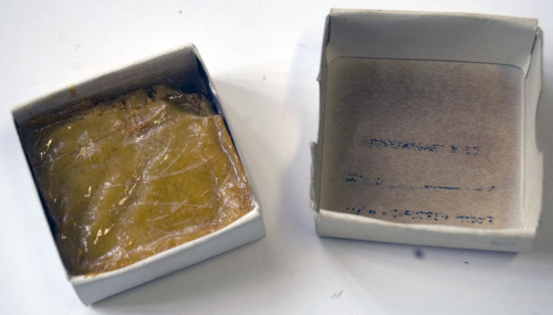 sulla pece, riscaldata prima dell'uso, il calzolaio passava lo spago al fine di renderlo più scorrevole durante l'operazione di cucitura della tomaia