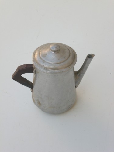 piccolo bricco in latta con lungo beccuccio e coperchio. Il manico ad ansa di colore scuro è opposto al beccuccio.Notizie storico-critiche