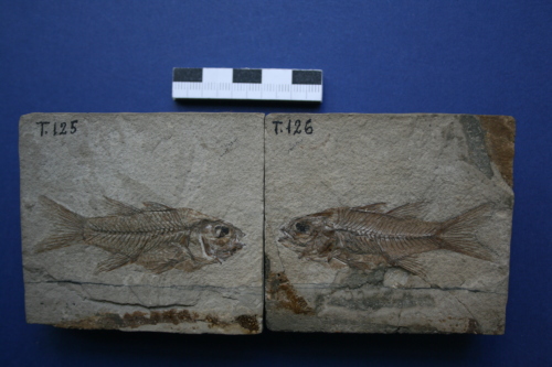 fossile - pesce fossile suddiviso in parte e controparte (esemplare)