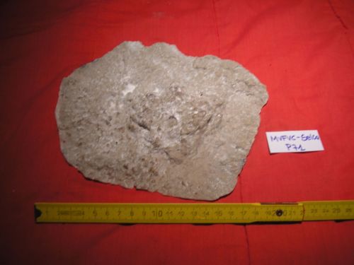 Calco di controimpronta tridattila del piede di piccolo dinosauro teropode: è la controimpronta dell'orma impressa sul masso SEMP.F del Monte Pelmetto, nel comune di Zoldo Alto.