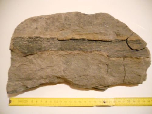 Frustoli carboniosi in arenaria, resti vegetali provenienti da Digonera. ambiente continentale terrestre.