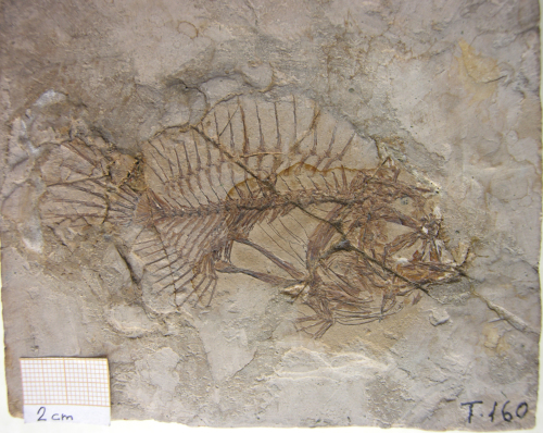 fossile - pesce fossile suddiviso in parte e controparte (esemplare)